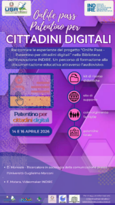 Nell’ambito del progetto “Onlife Pass – Patentino per cittadini digitali”, è il corso di formazione alla documentazione educativa tramite audiovisivo in collaborazione con INDIRE, a seguito di Accordo di collaborazione per il monitoraggio e la documentazione audiovisiva sul tema della cittadinanza digitale nelle scuole aderenti al progetto “Onlife pass – patentino per cittadini digitali”, con l’obiettivo di promuovere la diffusione e la condivisione di buone pratiche tra le istituzioni scolastiche.